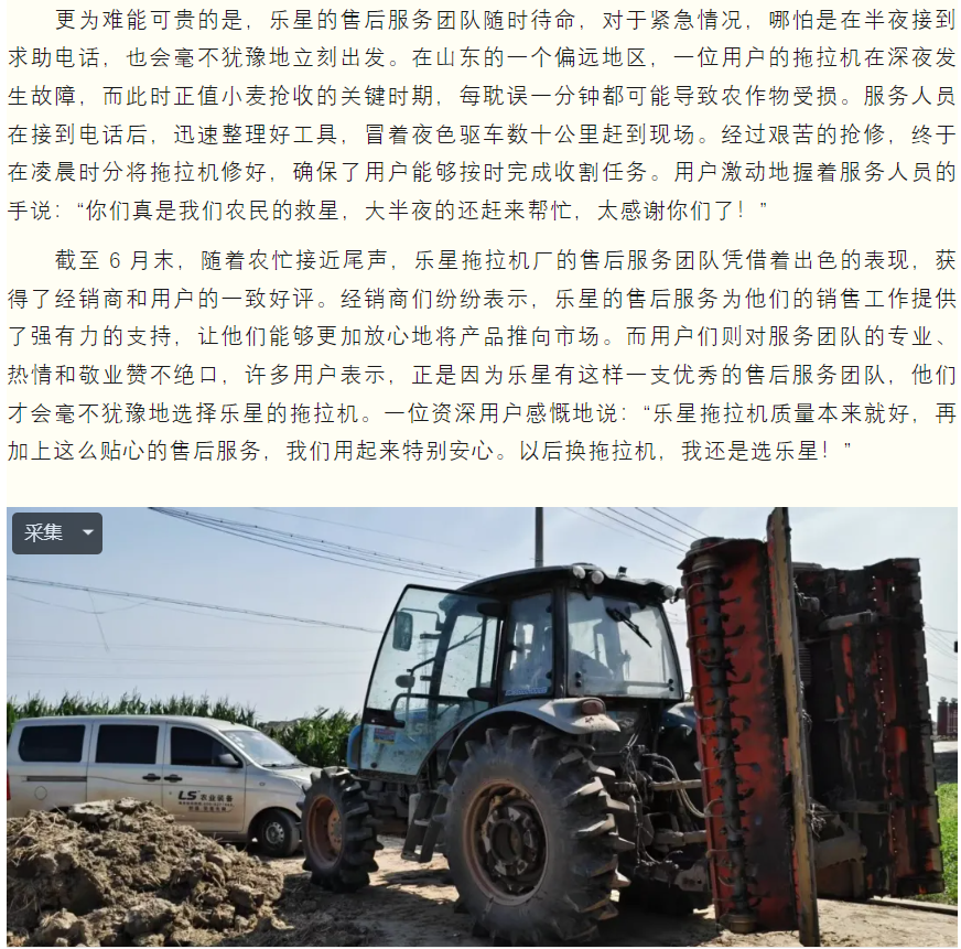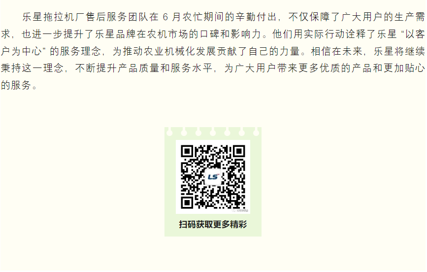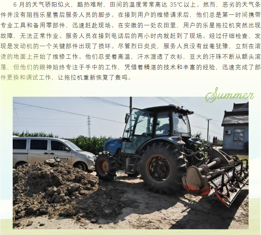 乐星拖拉机厂售后服务团队全力支援农忙 获用户一致好评